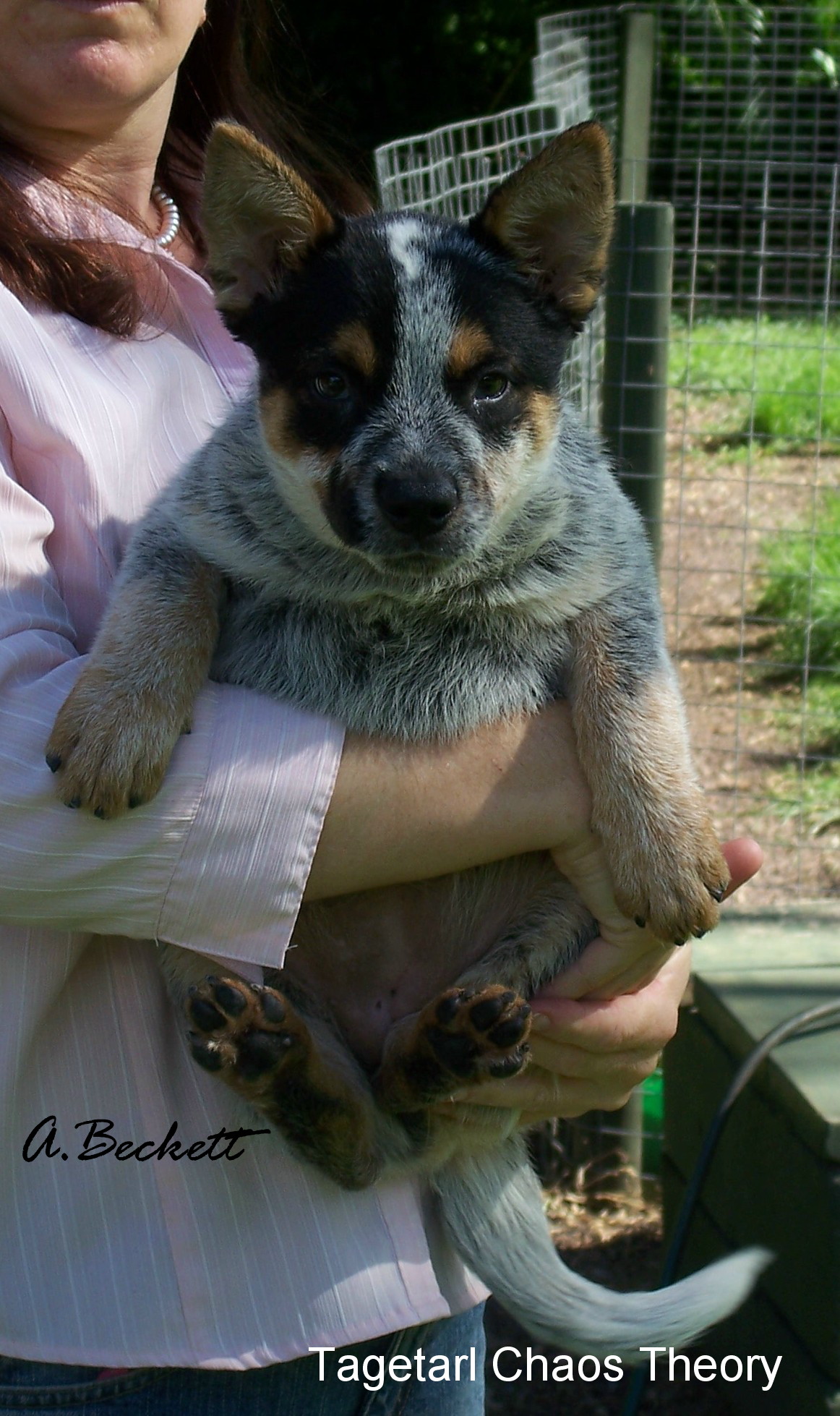 | Check out our cheeky little CHELSEA who is Complete Chaos. Pictured here at two months old she is already a whirlwind of destruction. Wait and see what a stir she causes when she hits the ring! |