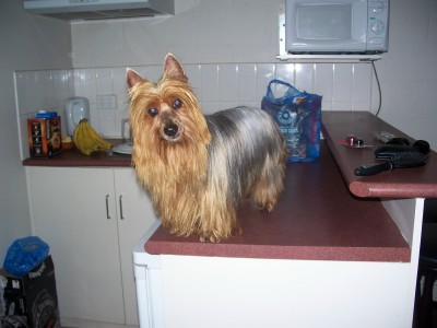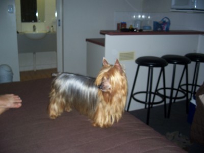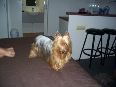 | JASPER has been an awesome show dog. He is absolute terrier to the bone and always enters the ring with a "so what's ya problem" attitude. He is boss of the ACDs and rules the roost at home. Although only lightly shown his wins have been impressive. Awarded Runner Up To BEST IN SHOW as well as 5 BEST IN GROUP awards. The judges comment on awarding him Runner Up BIS was: "It is hard to find a Silky nowdays who has either correct size, correct colour, correct type or correct movement and this dog has ALL of those attributes." What more can we say! JASPER is truely my "Little Man". He is absoloutely devoted to me and is my constant shadow when he is in the house. It is so funny to see him growling at the 'big' cattle dog boys if i am walking one of them. |