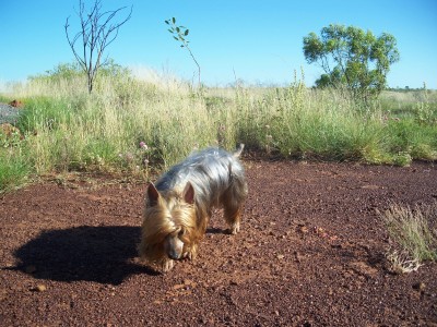 | Here are some photos of Jasper stretching his legs at one of the stops on our way home from Alice Springs May 2010 |