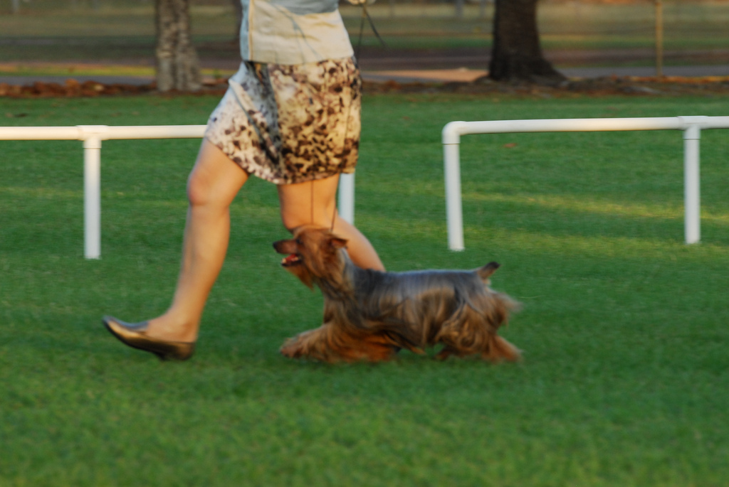 | Well, we decided to bring the little man out of retirement in 2010 at 8 years old. He made the trip down to Alice Springs with us in May, a 3,000 kilometre round trip by road. Not only did Jasper get some great comments from all 4 judges but was also awarded: 2 x R/UP BEST EXHIBIT IN GROUP and 2 x STATE BRED IN SHOW Mr Missen commented that Jasper was... "A lovely silky that is correct size, not too big with very good colour. He is very well presented." |