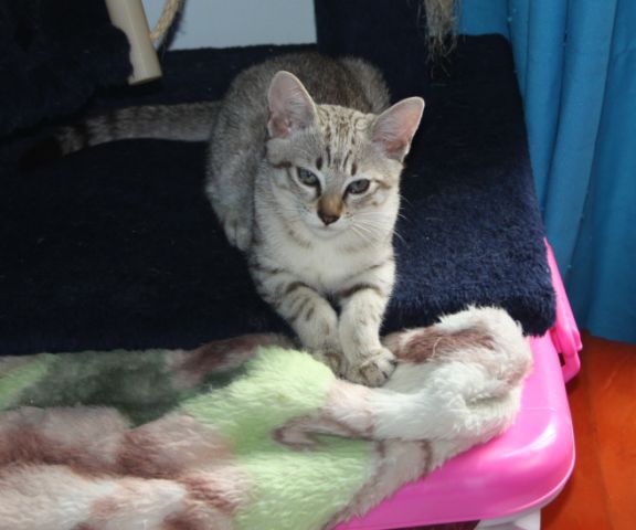 Australian Mists are a medium sized, health breed with no man-made exaggerations.Mists are low maintainance, having an easy care short coat and are very clean. Probably the most recognisable attribute of the Mist is their appearance. Mists come in a distinct variety of subtle coat colours and patterns which are quite unique to the breed and very individual. Their coat pattern is either spotted (subtle spots on a misty background) or marbled (subtle swirls on a misty background). Recognised colours include: brown, blue, lilac, chocolate, peach and gold. Mists have lovely large green eyes that are very expressive.